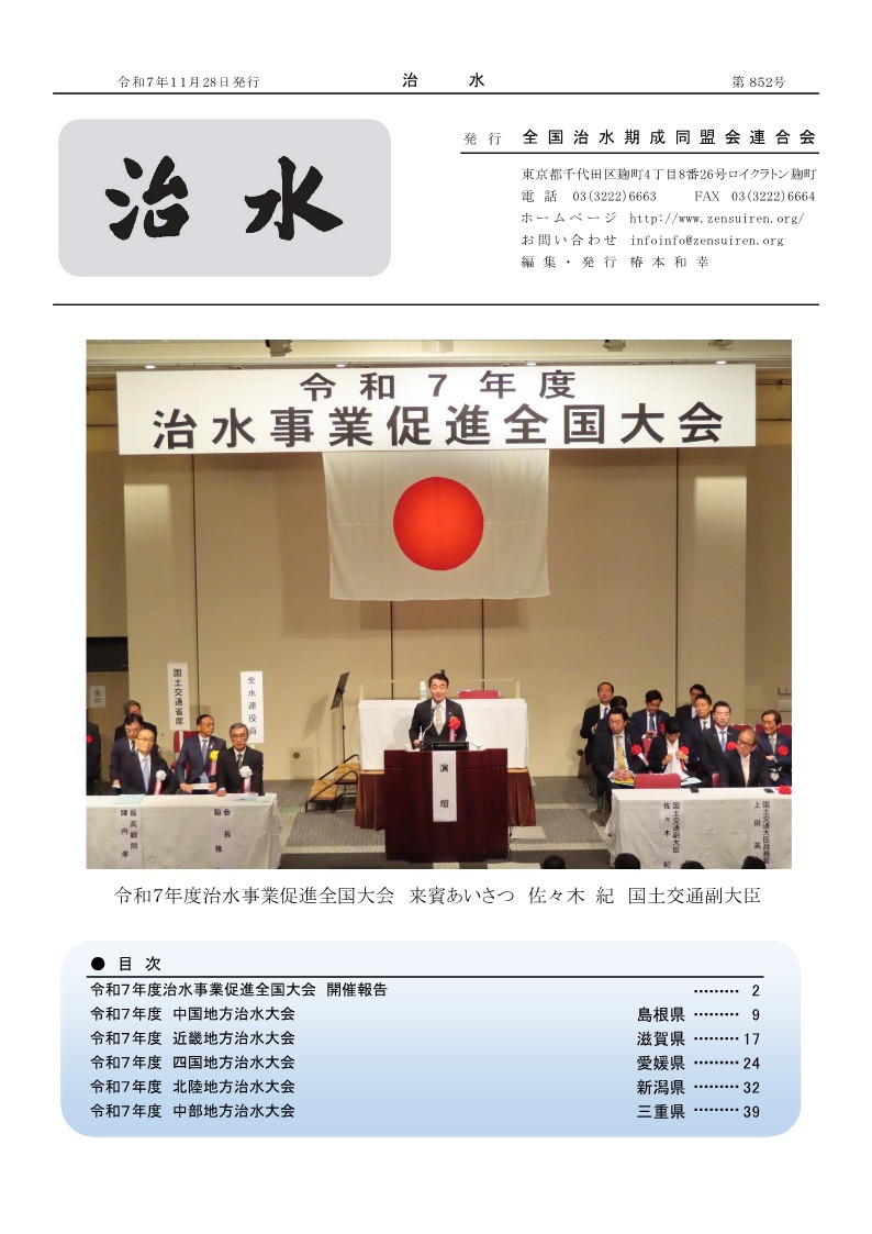 2025年5月30日 / 最終更新日時 : 2025年5月30日 zensuiren 治水2025年 治水847号(2025年5月号) ●第77回全国治水期成同盟会連合会通常総会 ●令和7年度 土砂災害防止月間の実施
